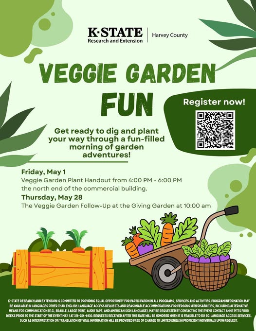 Harvey County children in Kindergarten through 5th grade may sign up for free plants and lessons in raising their very own garden! Register for your child's plants today and pick up on May 1st (4-6pm). See our program flier and registration link.